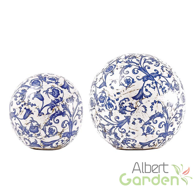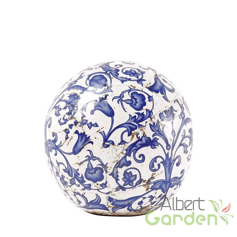 Antikolt hatású kerámia díszgömb, melyet kék fehér virágmintája tesz különlegessé. Dizájnja a francia vintage hangulatot idézi fel. Külső és belső használatra egyaránt alkalmas, így akár a polcra feltéve is egyedi lakáskiegészítőként funkciónál, de az erkélyen, a teraszon, sziklakertben vagy a fűben ugyancsak elhelyezhető. Hideg időjárás esetén nem ajánlott a terméket a szabadban hagyni, mivel a fagy okozhat sérülést vagy repedést a kerámia felületén. Hideg időjárás esetén nem ajánlott a terméket a szabadban hagyni, mivel a fagy okozhat sérülést vagy repedést a kerámia felületén.