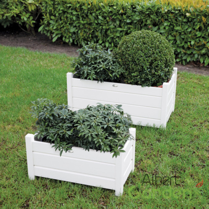 Téglatest alakú virágláda kisebb méretben, letisztult forma és elegáns fehér szín jellemzi. Ültessünk bele kisebb bokrokat vagy kedvenc virágainkat és helyezzük el őket a teraszon vagy a kert bármely pontján.