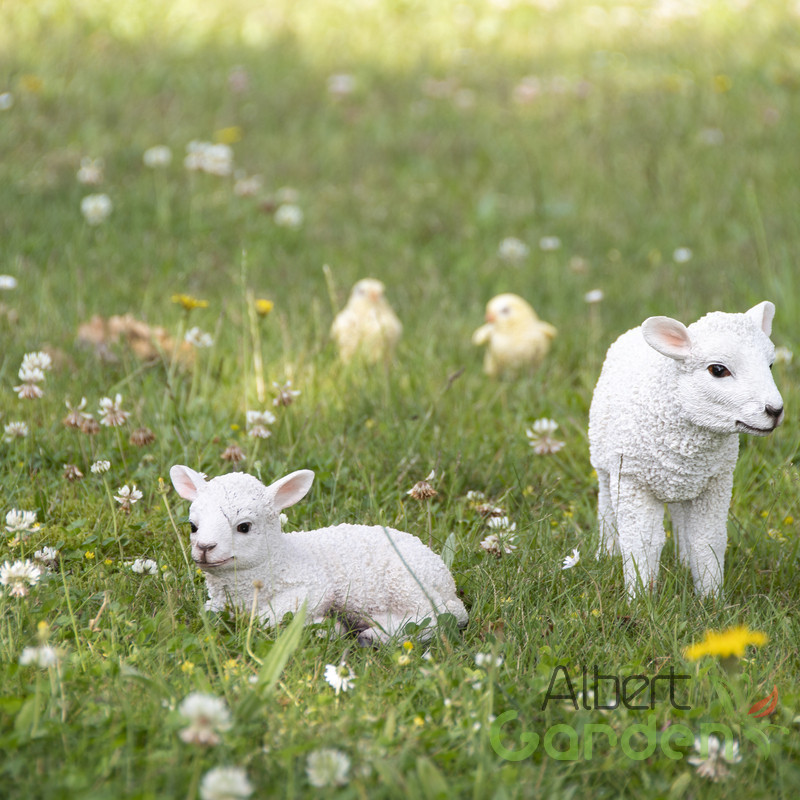 Fekvő bárány kerti polyresin szobor. A szobrok festése aprólékos munkával, egytől egyig kézzel történik, így a végeredmény a megszólalásig hasonlít az eredeti állathoz. A termék anyaga polyresin, amely ellenáll a téli fagyos időjárásnak is. Mindemelett UV álló így a nyári magas UV sugárzás sem tesz kárt a termékben. Kültéren és beltéren egyaránt használható dekorációs termék. A kert bármely részén vagy a bejáratnál is elhelyezhető, így fogadva a vendégeket.