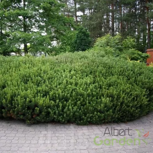 Növekedési formája: Törpe, alacsony, szélesen elterülő, párnaszerű habitusú fenyő. Ágai elterülők, a végeken kissé megemelkednek, így szabálytalan, természetes formát alkot.