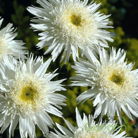 Virág színe: Fehér szirmok sárga középpel, nagy, szabályos virágfejek.
