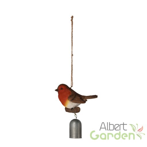 Kismadaras polyresin szélcsengő, vörösbegy, 14,5 cm