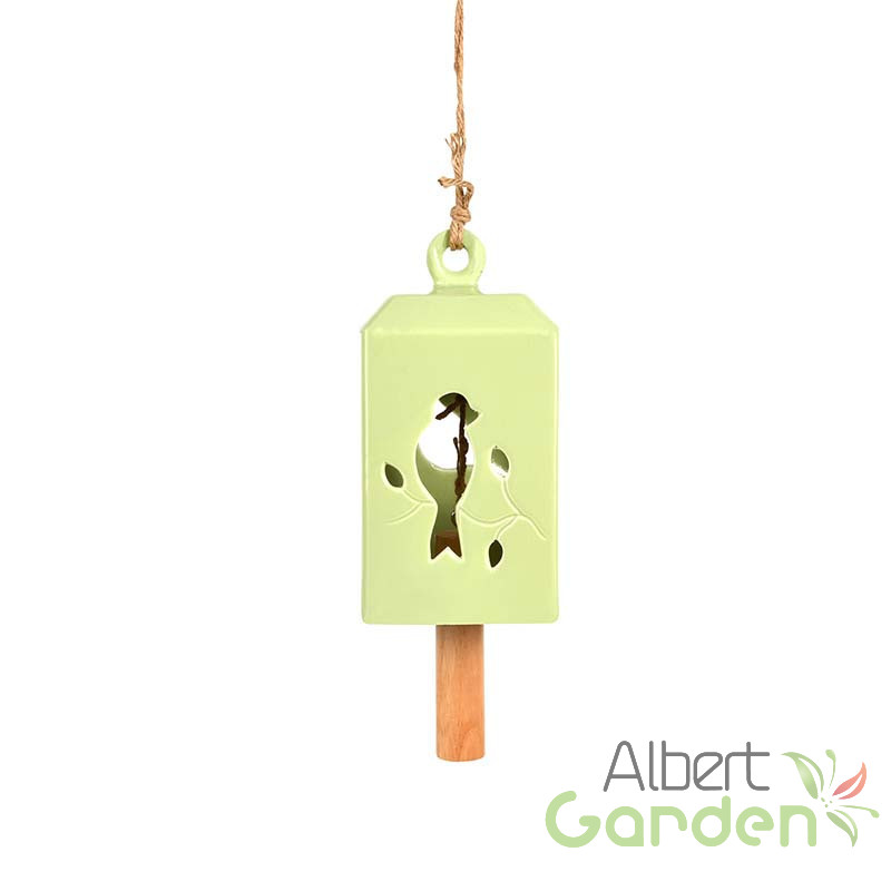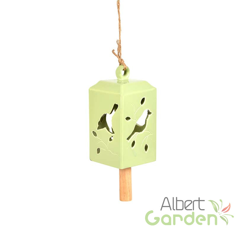 Rusztikus megjelenésű szélcsengő mentazöld színben. Használhatjuk a kertben, az erkélyen, a teraszon vagy akár otthonunk belső helyiségeiben is. Tedd vele különlegessé környezeted! Hideg időjárás esetén nem ajánlott a terméket a szabadban hagyni, mivel a fagy okozhat sérülést vagy repedést a kerámia felületén.