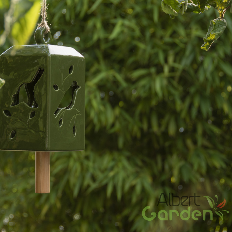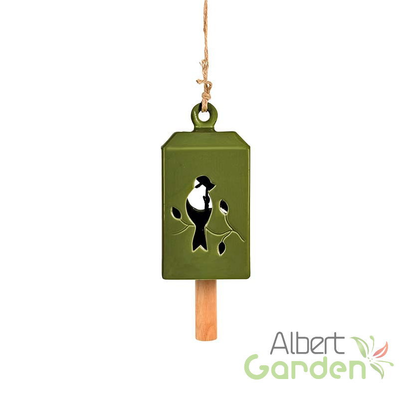 Rusztikus megjelenésű szélcsengő olivazöld színben. Használhatjuk a kertben, az erkélyen, a teraszon vagy akár otthonunk belső helyiségeiben is. Tedd vele különlegessé környezeted! Hideg időjárás esetén nem ajánlott a terméket a szabadban hagyni, mivel a fagy okozhat sérülést vagy repedést a kerámia felületén.