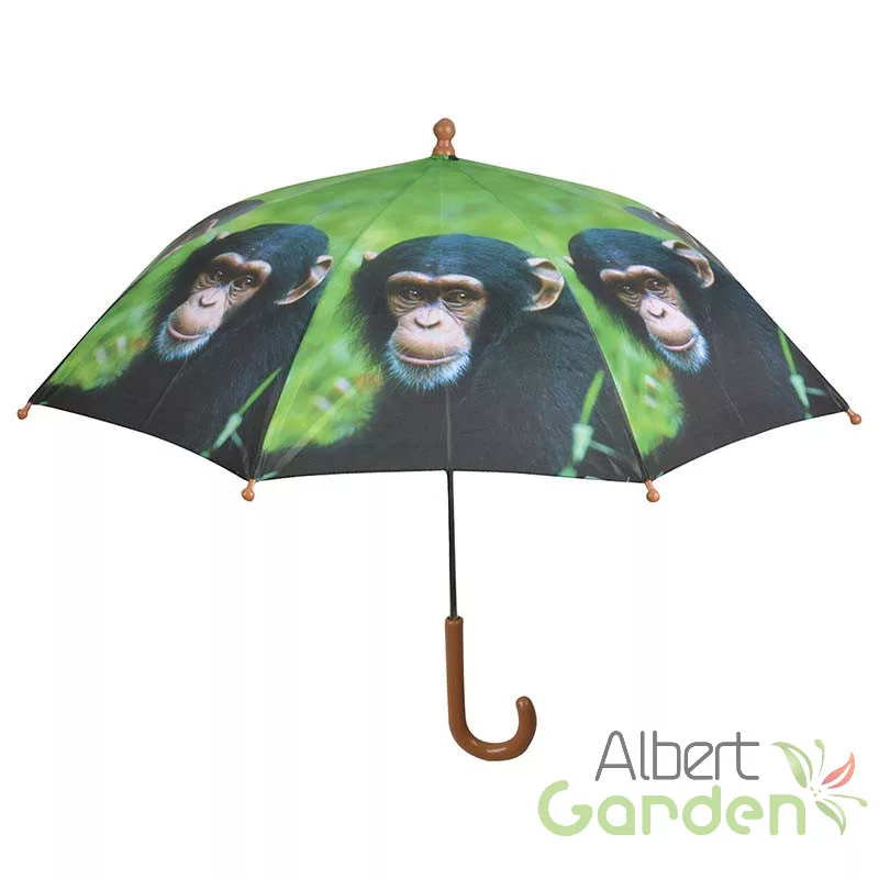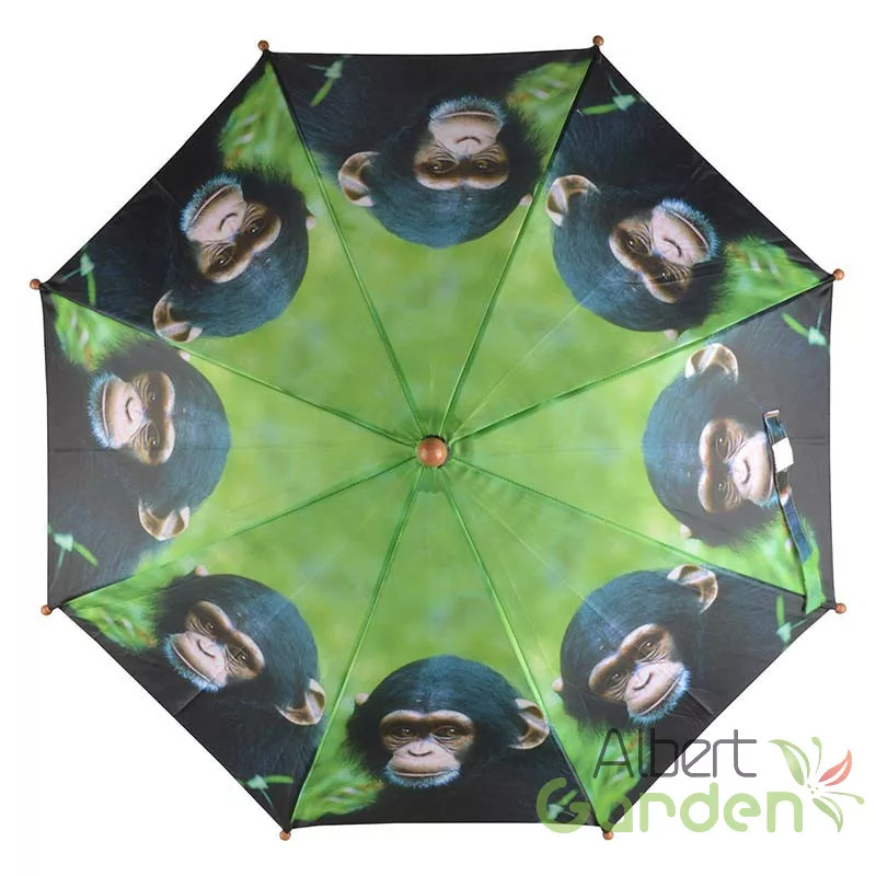 A kicsik is boldogabban mennek ki az esőben sétálni, ha velük lehet az ő saját, különleges esernyőjük is. Kifejezetten gyerekeknek tervezték ezt a majom mintás esernyőt. Vázát műanyag fogantyú és biztonságot szolgáló, lekerekített gombok adják. Az esernyő könnyen kinyitható és a gyerekek számára is kezelhető. Mérete miatt legfeljebb 7-8 éves korig ajánlott.