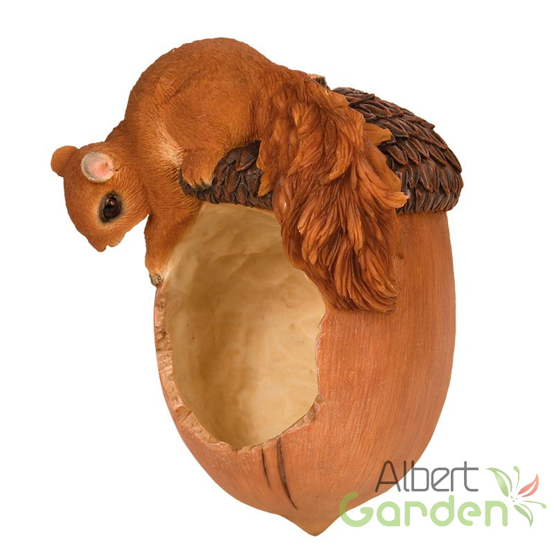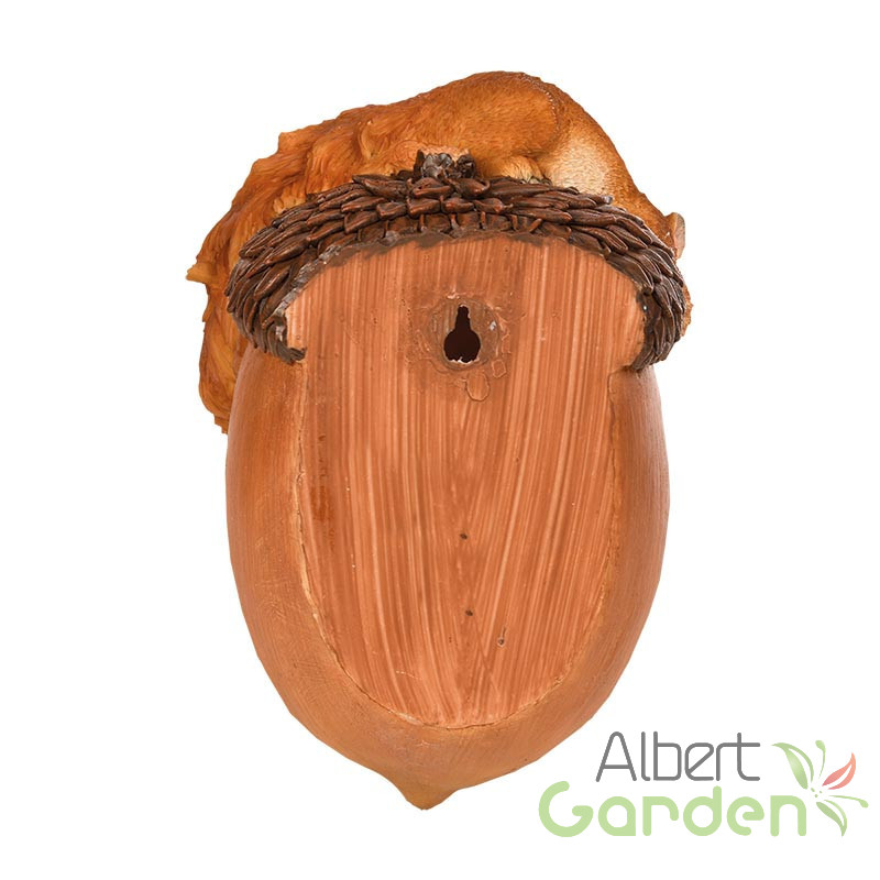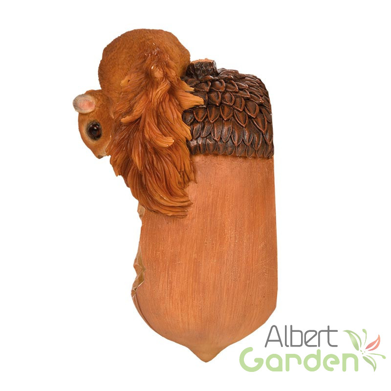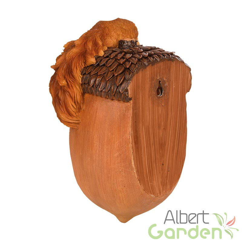 Makk alakú madáretető, kerti polyresin dekorációs kiegészítő mókussal a tetején. Mutatósságának titka abban rejlik, hogy az etető festését nagyon alaposan, kézzel végzik. Az etetés könnyebbséget és biztonságot jelent a környék madarainak, akik madárcsicsergéssel hálálják meg a gondoskodást. A termék anyaga polyresin, amely ellenáll a téli fagyos időjárásnak is. Mindemelett UV álló így a nyári magas UV sugárzás sem tesz kárt a termékben. A hátulján kialakított lyuk segítségével könnyen felszerelhető a falra vagy egy vastagabb fatörzsre. A felszereléshez szükséges szöget a termék nem tartalmazza.