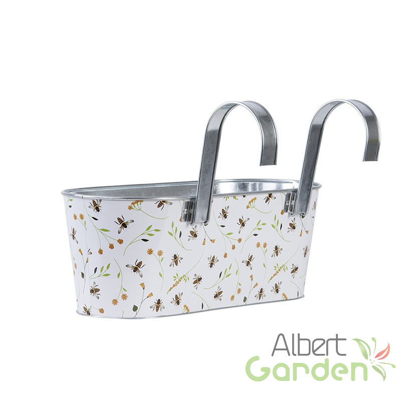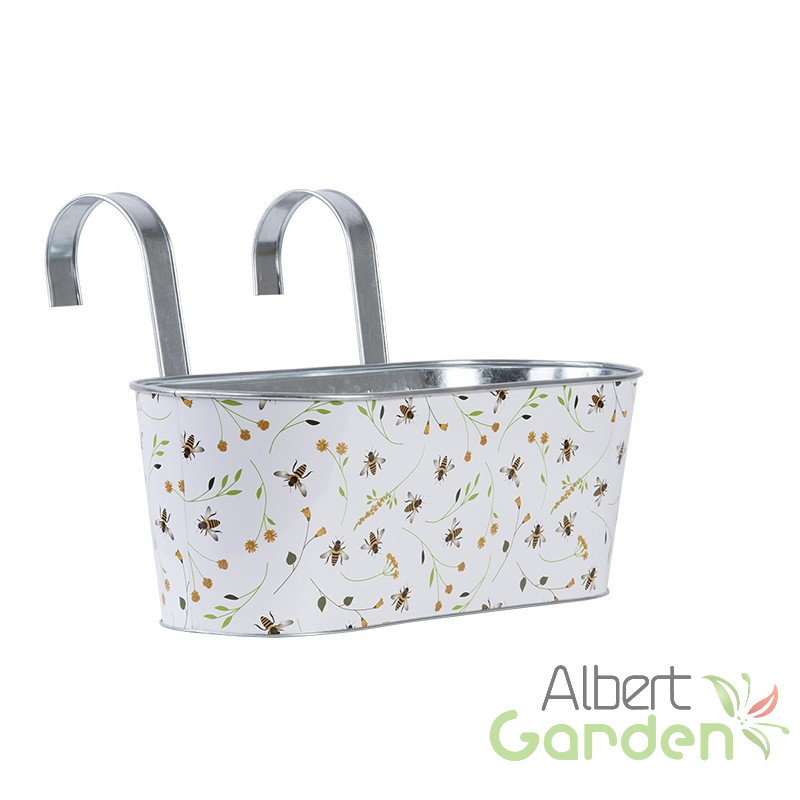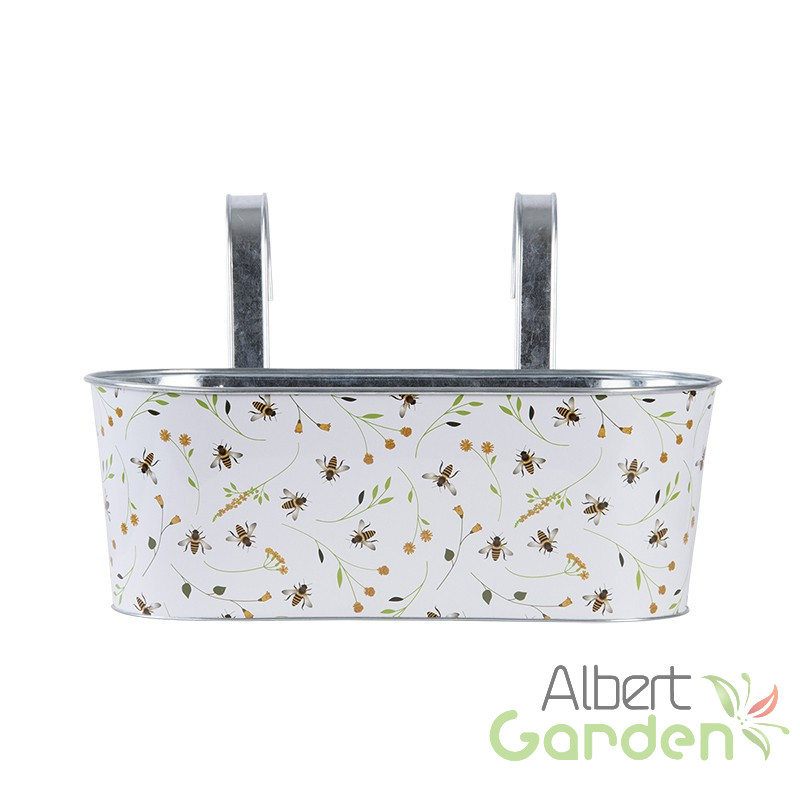 Méhecske mintás, felakasztható virágláda, amely egyszerre több növény tárolására is lehetőséget ad. Fogantyújának köszönhetően az erkélyekre, kerítésekre könnyen feltehető. Külső és belső használatra egyaránt alkalmas virágtartó. Vidám színével és mintájával feldobja környezetét.