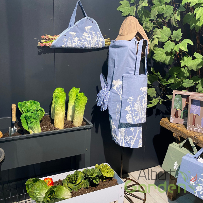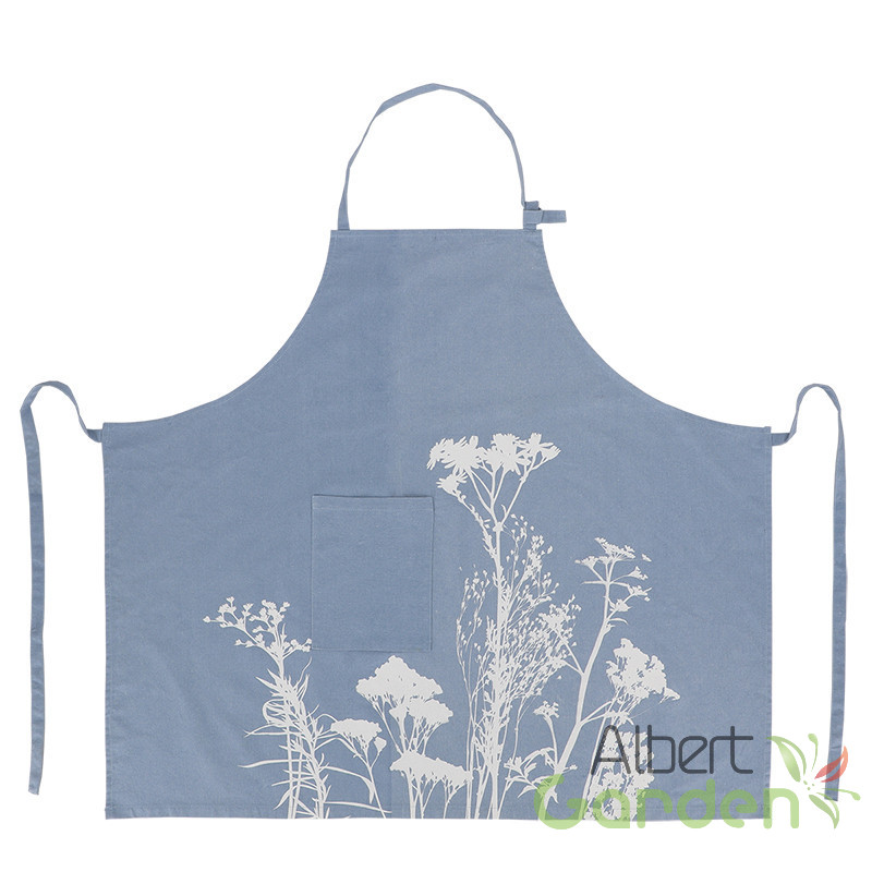 Mezei virág mintás kerti kötény, kék színben. Ez a dekoratív és minőségi kötény elengedhetetlen a kertészkedés során, és számos tágas zsebbel rendelkezik, amelyekben különféle kerti szerszámok tárolhatók. A nyakpánt és az öv egyaránt teljesen állítható. Koptatott hatású vászonkötény.