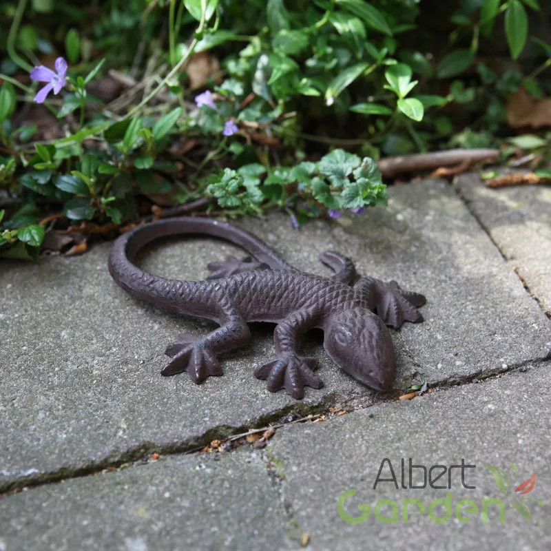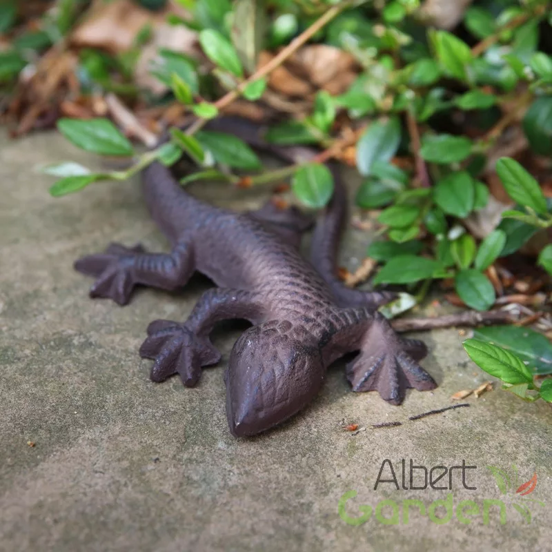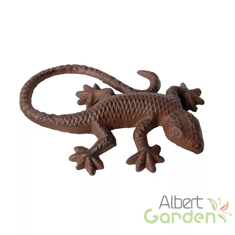 Kertünk különleges díszítőeleme lehet ez az öntöttvas gyík dekoráció. Remekül mutat a teraszon, az erkélyen, a kertben és a sziklakertekben megbújva egyaránt, de belső használatra is alkalmas. Öntöttvas jellegéből adódóan kültéri elhelyezés esetén, a korrózió megjelenésével egy patinásabb, rusztikusabb termék válik belőle.