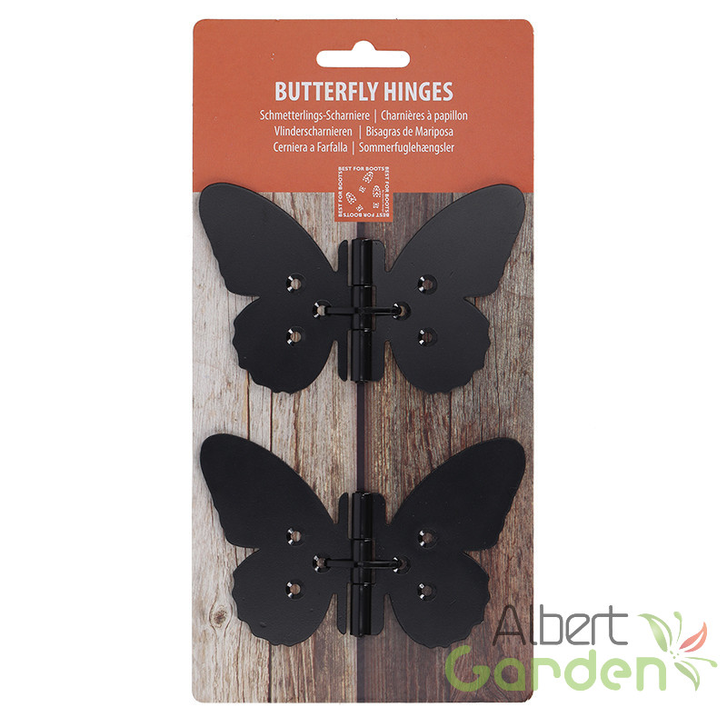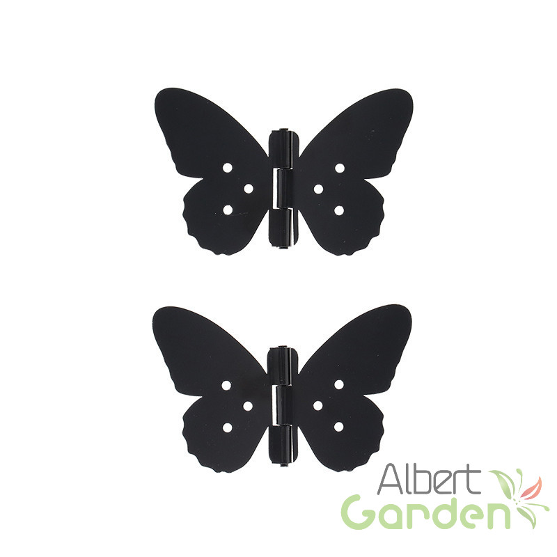 Pillangó alakú zsanér, A változat. A dekoratív, pillangószárnyakat formázó csuklóspántok stílusosan díszítenek bármely szekrényt vagy más bútordarabot, lehetővé téve az ajtók kényelmes nyitását-zárását. A lepkeszárnyakon található lyukakon keresztül a zsanérokat 6 db csavarral rögzíthetőek a bútorelemekhez. A csomag 2 darab fémből készült, fekete színű zsanért tartalmaz, csavarok nélkül. A zsanérok egyaránt nyílnak jobbra vagy balra és nem szétszedhetőek.