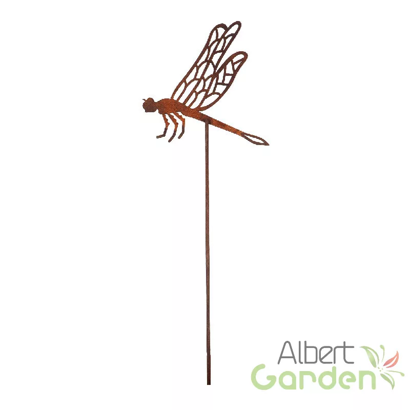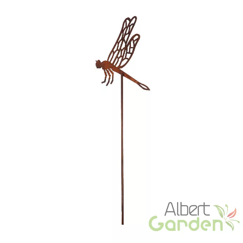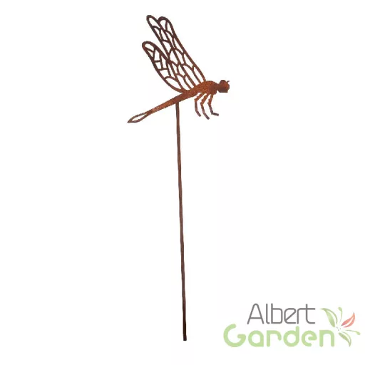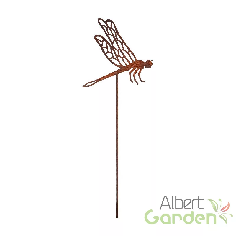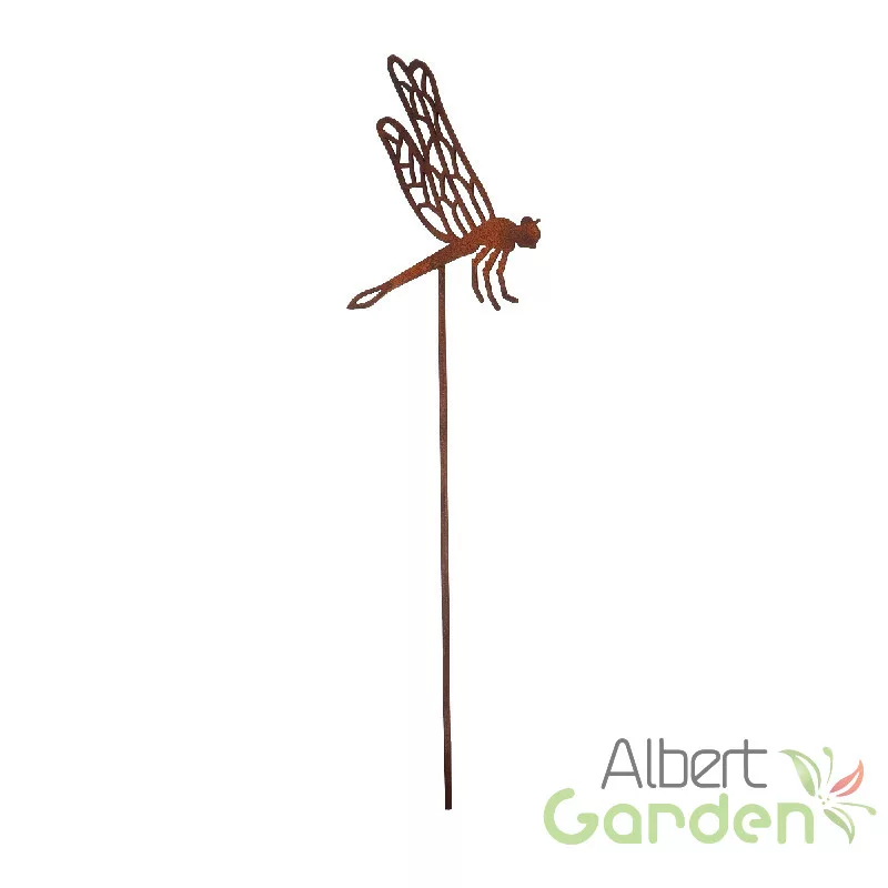 Rusztikus lézervágott leszúrható szitakötő sziluett, kültéri és beltéri dekorációs kiegészítő, 37 cm