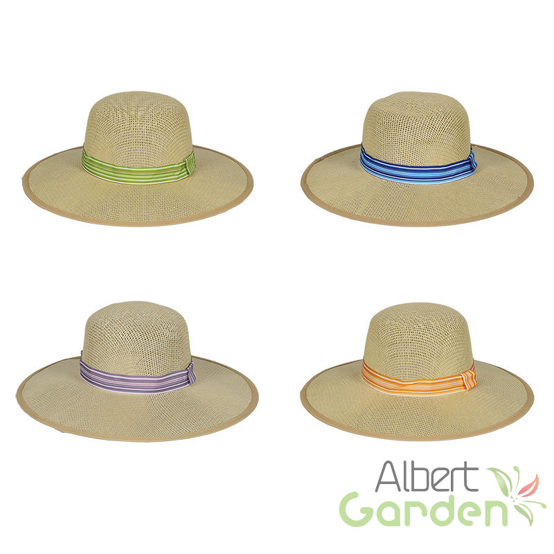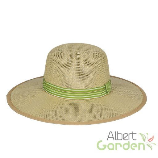 Színes szalagos szalmakalap, zöld, 39 cm átmérőjű