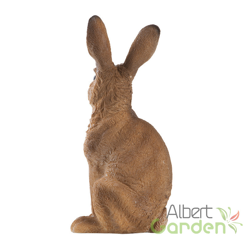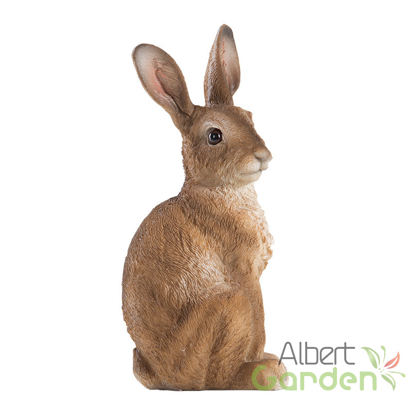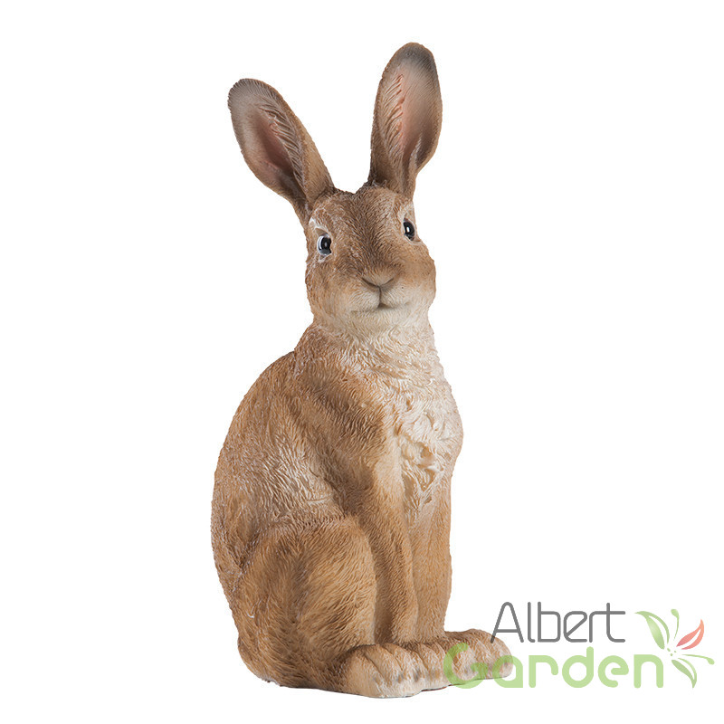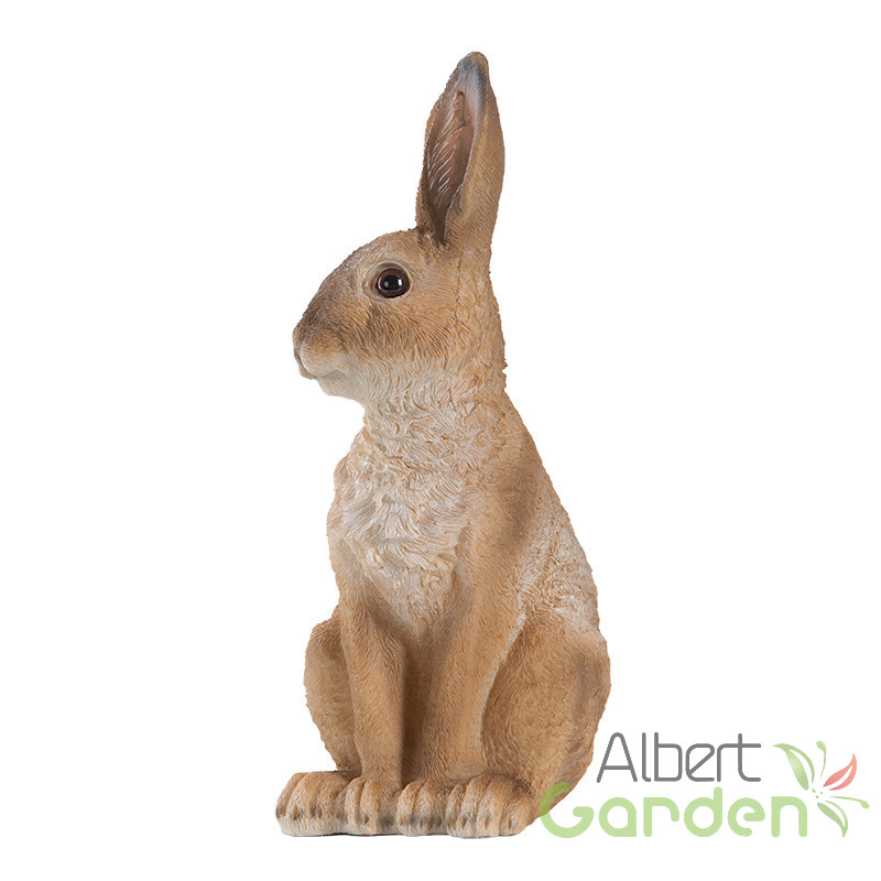 Nagyméretű ülő nyúl szobor. A szobrok festése aprólékos munkával, egytől egyig kézzel történik, így a végeredmény a megszólalásig hasonlít az eredeti állathoz. A termék anyaga polyresin, amely ellenáll a téli fagyos időjárásnak is. Mindemelett UV álló így a nyári magas UV sugárzás sem tesz kárt a termékben. Kültéren és beltéren egyaránt használható dekorációs termék. Elhelyezhető a fűben, a virágos kert mellett vagy akár a teraszon is. A bejárat mellé téve is jól mutat, így köszöntve a vendégeket.
