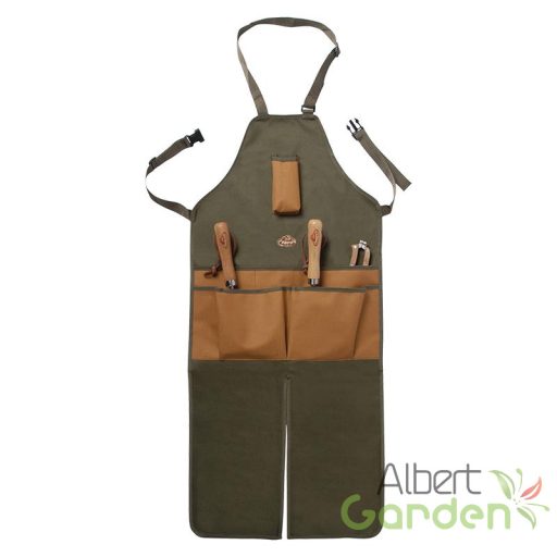 Hosszabb kertész kötény zöld-barna színben, amely alapvető kiegészítő minden kerti munkát végző számára. Nagy zsebeinek köszönhetően többféle eszköz tárolására is alkalmas. Nyakba tehető, és hátul összekapcsolható pántja is állítható, így a megfelelő, kényelmes méret kiválasztása sem akadály. Kiváló ajándék a kertészet szerelmeseinek.