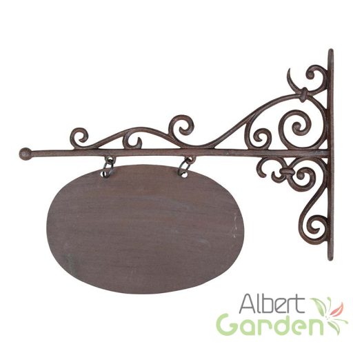 Klasszikus, viktoriánus stílusú öntöttvas cégér, amelyre krétával, festékkel vagy matricával egyedi feliratot készíthetünk. Stílusosan mutat saját otthonunk ajtajánál vagy az udvaron, de különböző üzletek főbejáratához is tökéletesen illik. A termék felszerelése egyszerű, ovális alakban, antik barna színben kapható. Rusztikus hangulatot áraszt, egy kedves felirattal mosolyt csalhatunk vendégeink vagy vásárlóink arcára. Öntöttvas jellegéből adódóan külső elhelyezés esetén, a korrózió megjelenésével egy patinásabb, rusztikusabb termék válik belőle. Tedd vele hangulatossá otthonodat vagy üzletedet!TIPP: A felszereléshez szükséged lesz az ehhez megfelelő kiképzésű csavarra is. A termék a csavart nem tartalmazza.